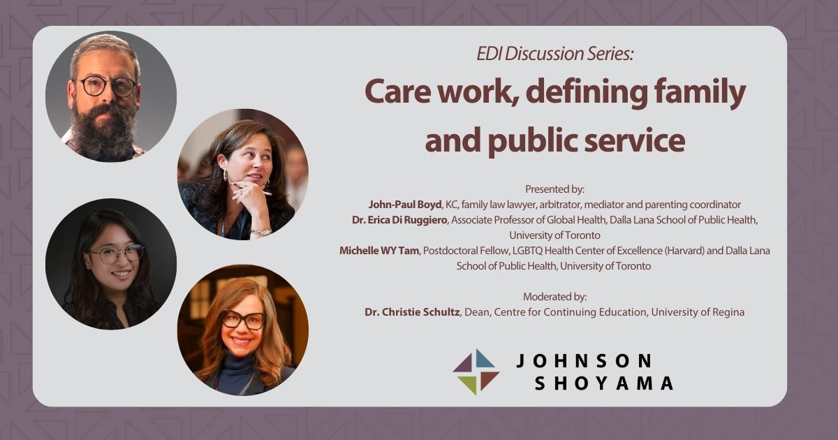 The JSGS EDI Discussion Series:- Features speakers from marginalized groups to share their lived experiences and recommendations on how the public sector can take action to address barriers in ending all forms of discrimination and oppression;